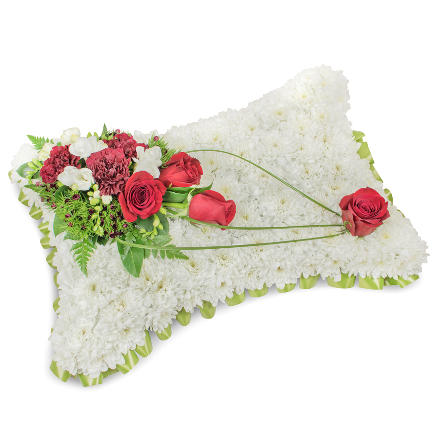 Show your heartfelt sympathy with this sophisticated floral arrangement featuring a splendid mix of white chrysanthemums, vibrant red roses, graceful white freesias, and rich dark red carnations, accented by dianthus and bear grass. Each element is carefully hand-selected to guarantee freshness and excellence, promising a display that is both charming and luxurious.